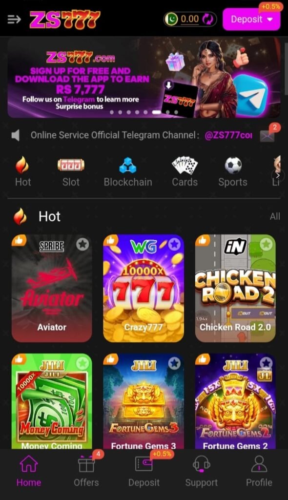 ZS777 Game is a mobile gaming app where people can play fun games and try to earn rewards. Many users in Pakistan are using this app because it combines entertainment with earning chances. For example, you can play simple games like cards, spins, and small challenges, and in return, you may get coins or rewards.